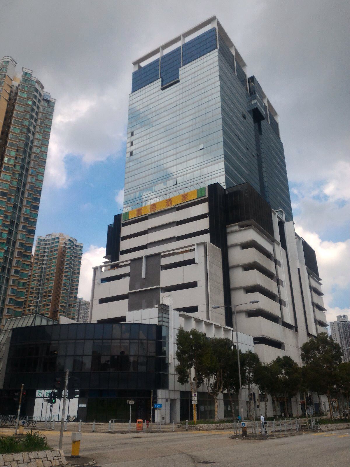 正門位於前方近巴士站,停車場入口在大廈後面。