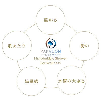 Paragon Derma 通過將微氣泡封裝於淋浴水中,讓你可在省水省燃料的同時享受熱水澎湃的微泡浴。通過微泡包裹整個身體,引導你的身體和心靈到健康的狀態並放鬆。此外,水滴中的氣泡會刺激血液循環,淋浴後繼續感覺溫暖。